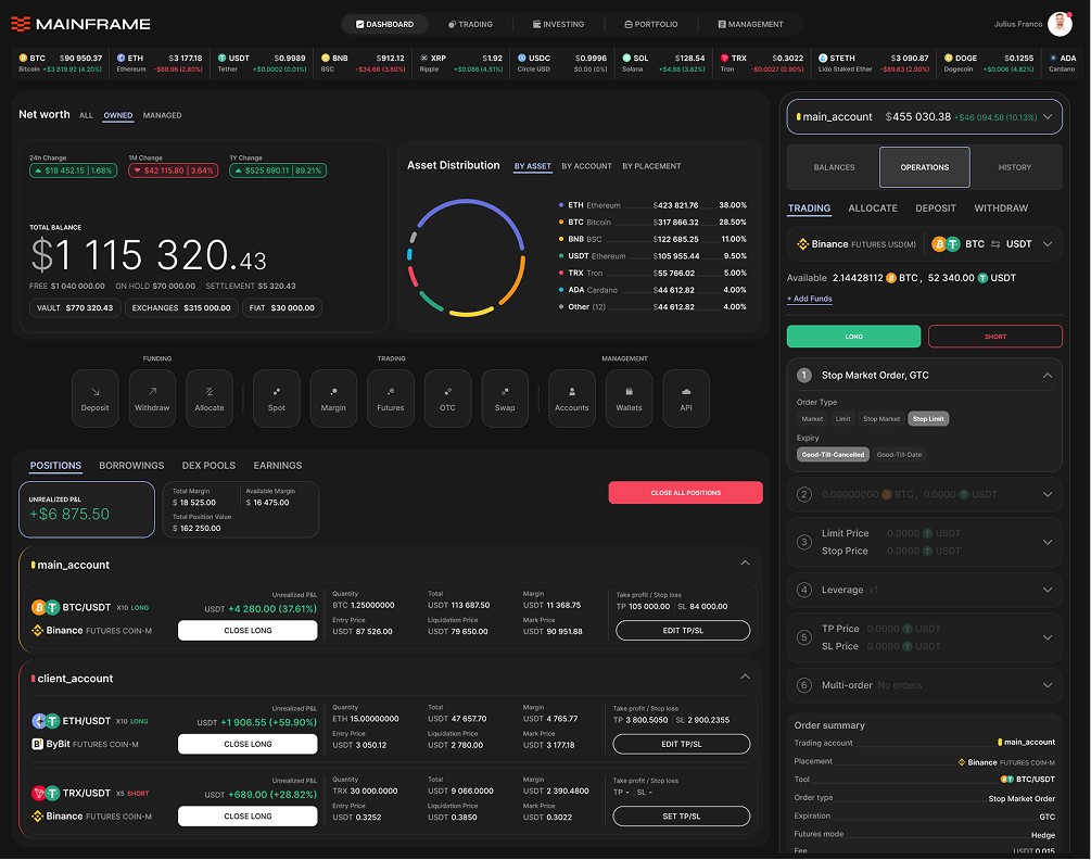 Mainframe is a Swiss-based, regulated platform that lets institutions and businesses access major crypto venues and fiat rails through a single onboarding
